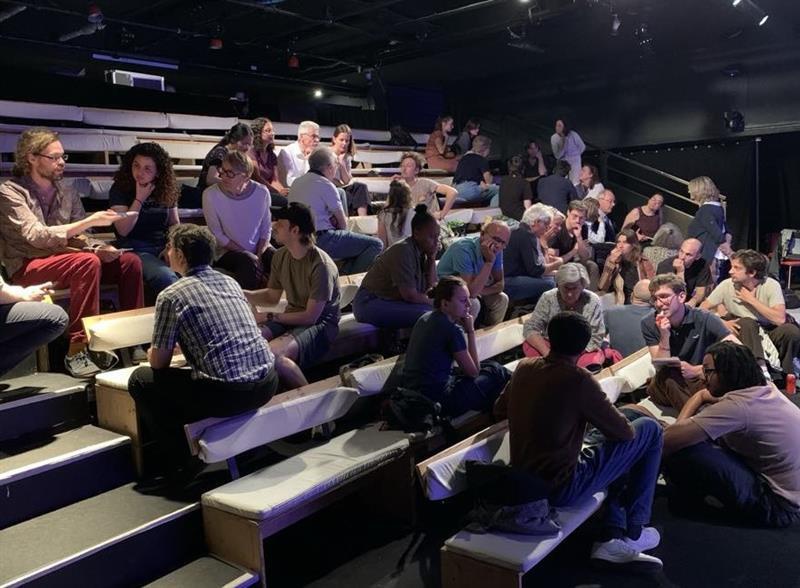 Né de l’atelier d’écriture mené par Fabrice Melquiot, MERCI est un spectacle choral qui donne vie aux récits de gratitude écrits par les participants. Porté par les voix du groupe, ce spectacle mêle poésie, musique et émotions pour explorer la reconnaissance sous toutes ses formes - intime, politique, tendre, ou impertinente.